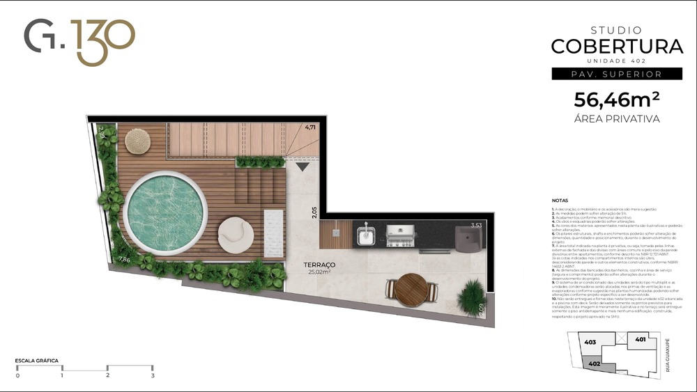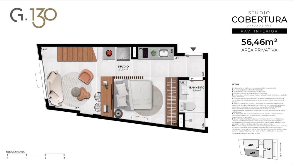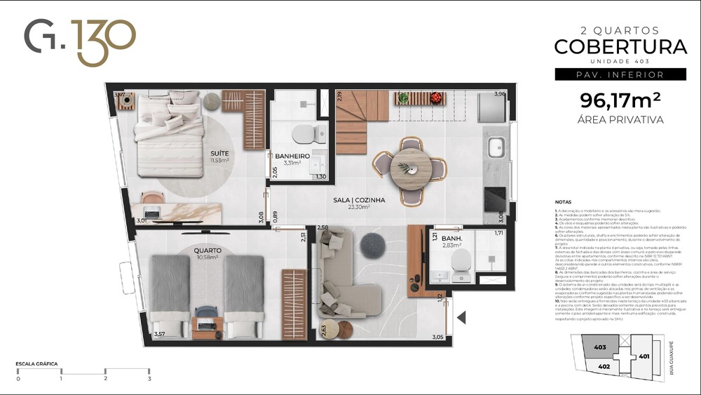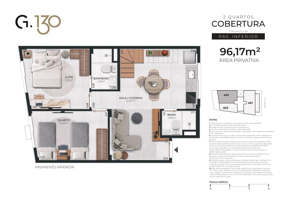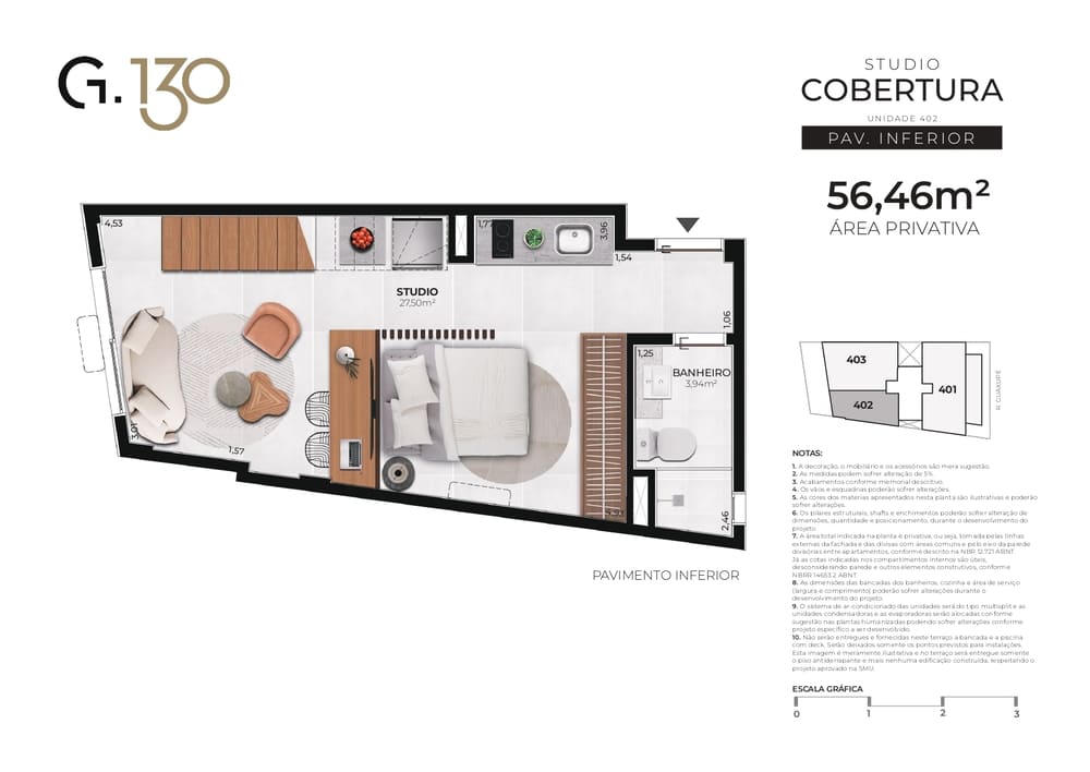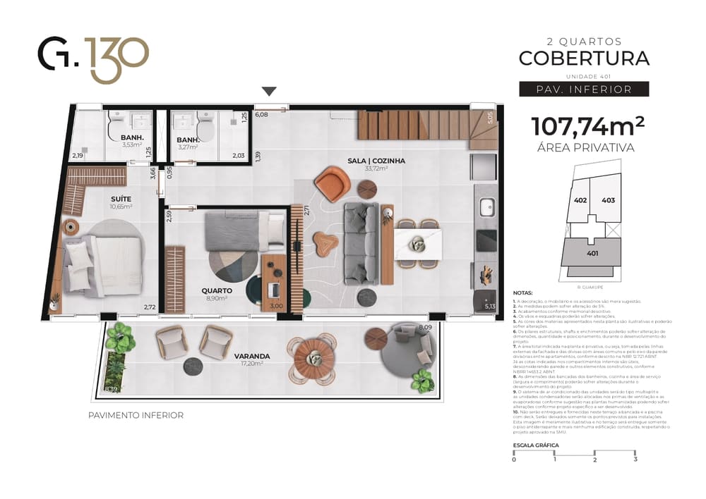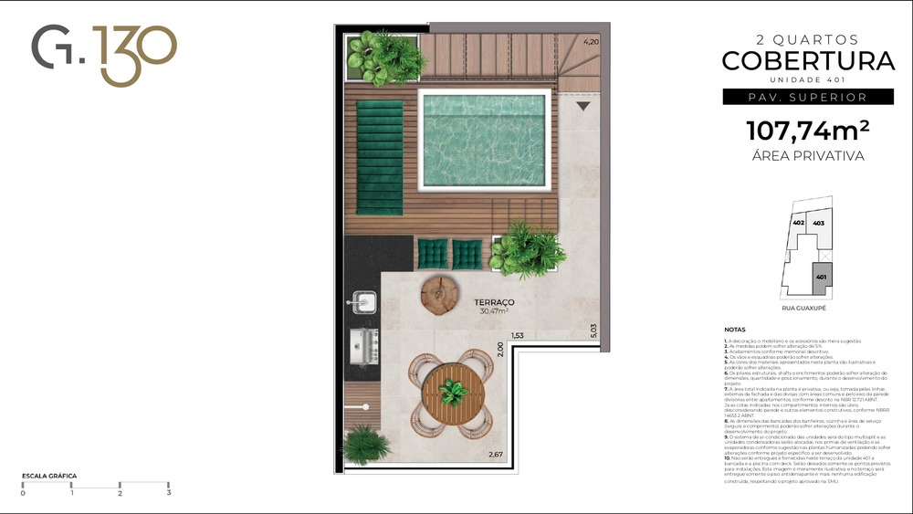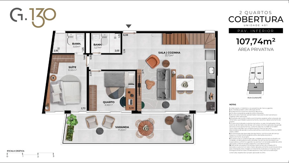 Cobertura Duplex: 56,46m² a 107,74m²