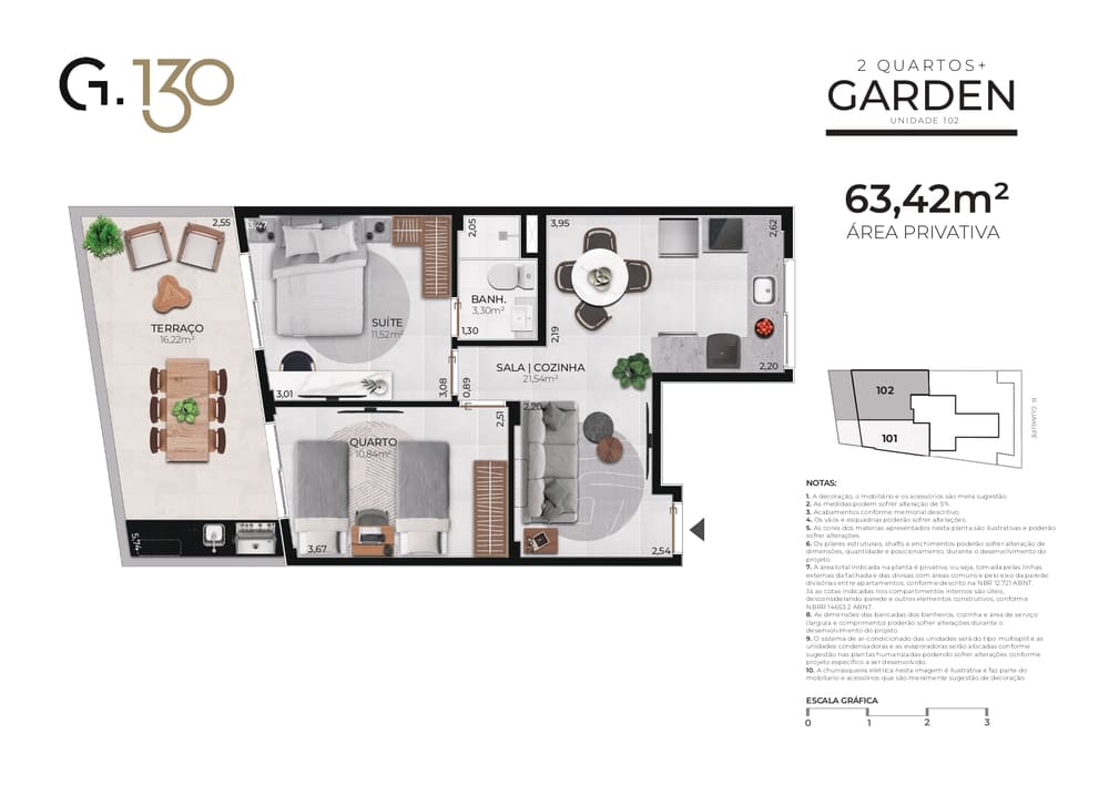 2 Quartos + Garden: 63,42m²