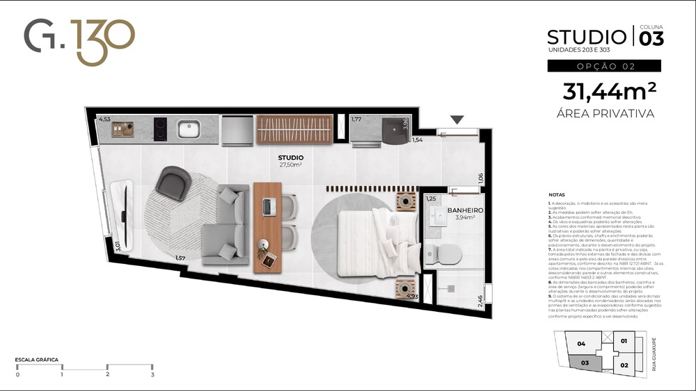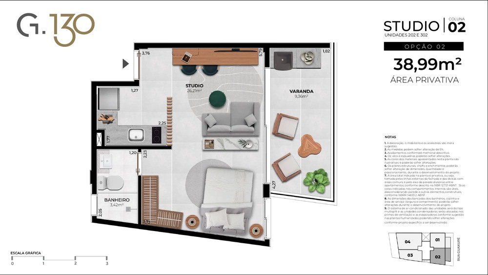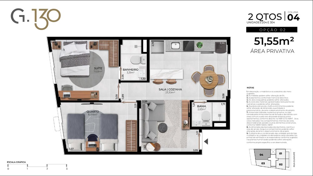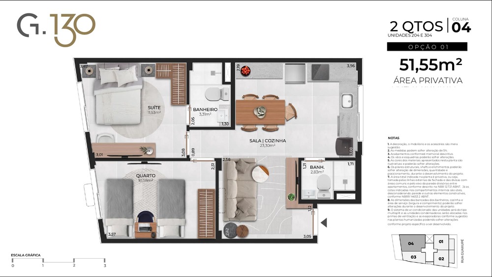 2 Quartos: 51,55m²