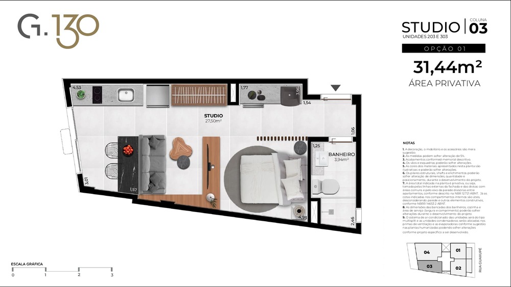 Studios: 31,44m² a 38,99m²